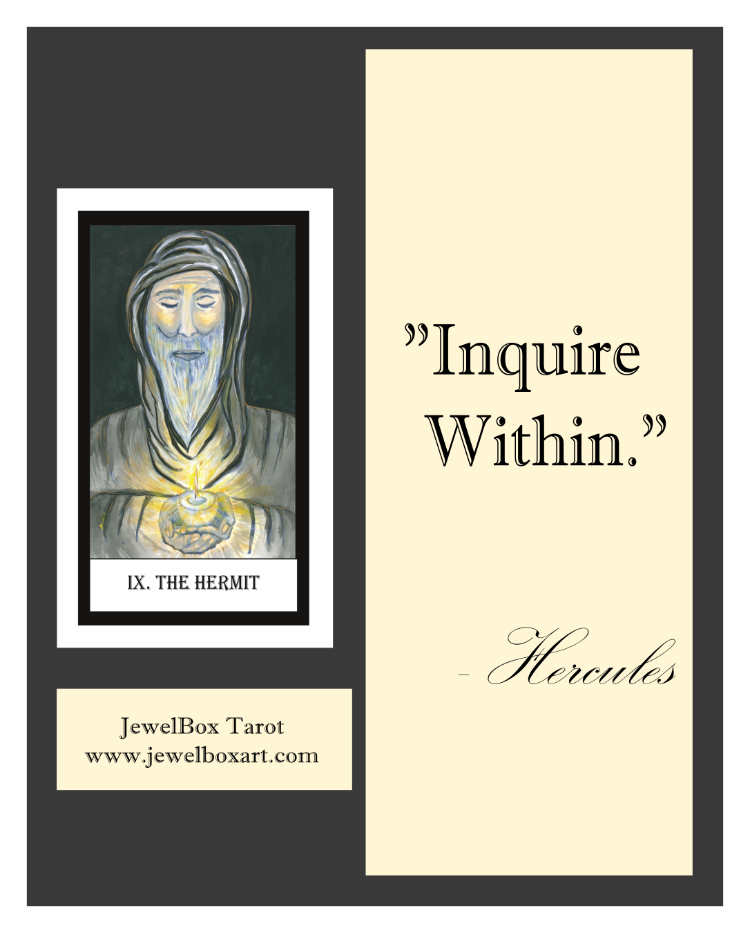In a reading, The Hermit card says, “stop, rest and take stock”.  There is a real need for the querent to see the current circumstances in a new light and deliberate a future course of action.  This is a time of inner growth and connection with inner guidance.  It is a time when the querent requires patience and peace.